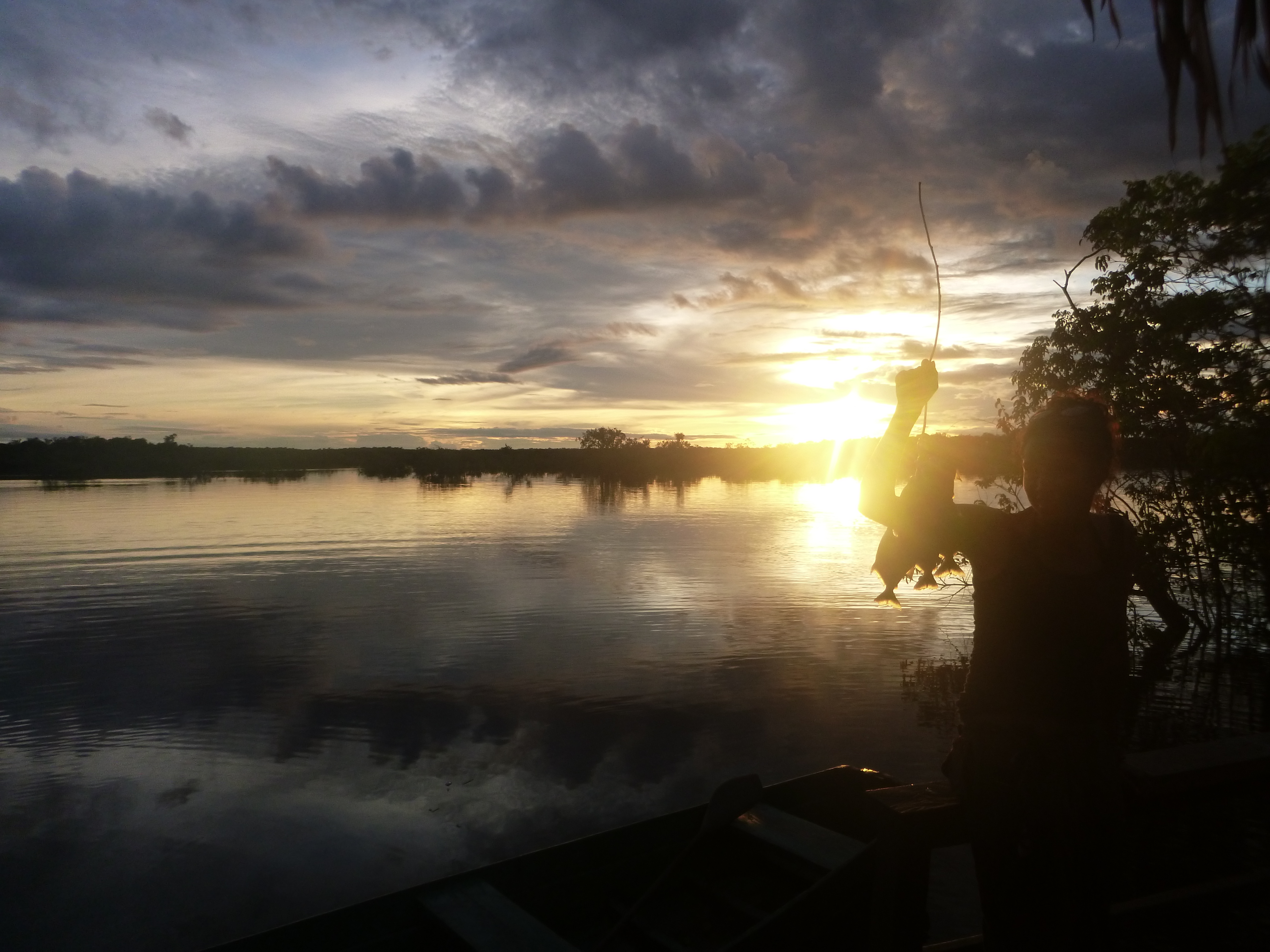 Jose one of the locals and our guide said we had to go fishing for dinner. Super excited about it. We canoed into the forest and you can tell that water levels had risen, tall trees were submerged almost 5 meters into the water. Jose passes along a couple of fishing rods and starts banging the water with the rod, in and out so the fish thinks that an animal has fallen and vooooop he catches a piranha. We do the same. In total 21 were caught, grilled and eaten.
