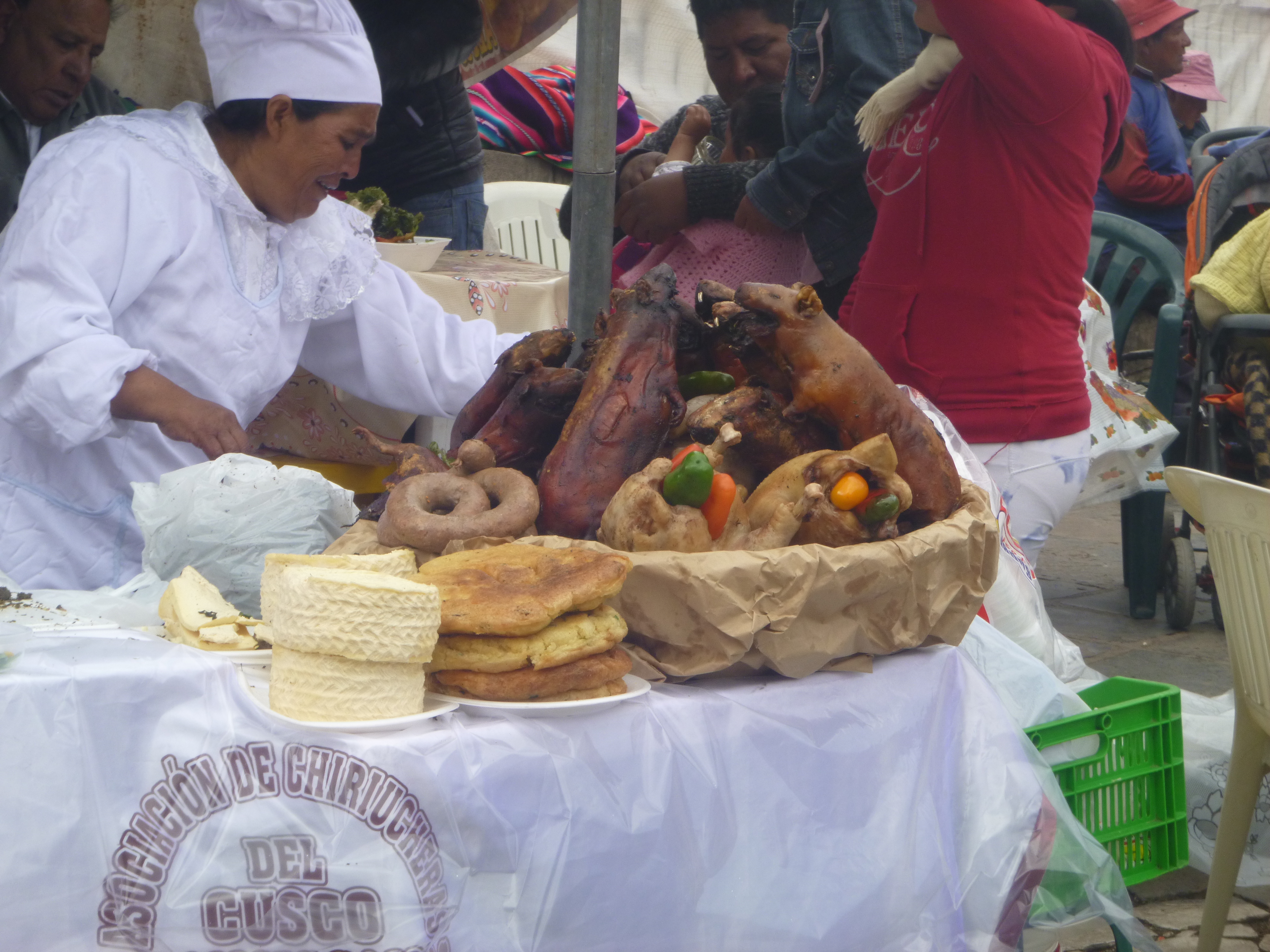 When in Peru you have to try guinea pig. On Sundays there is this massive market where everyone sells the same exact things. It’s roasted Guinea pig with fish eggs (dried), a plastic tasting sea weed thing with cheese and a break like thing made of corn. I did get one I think I ate a bite and gave up – Couldn’t do it. It wasn’t tasty at all.